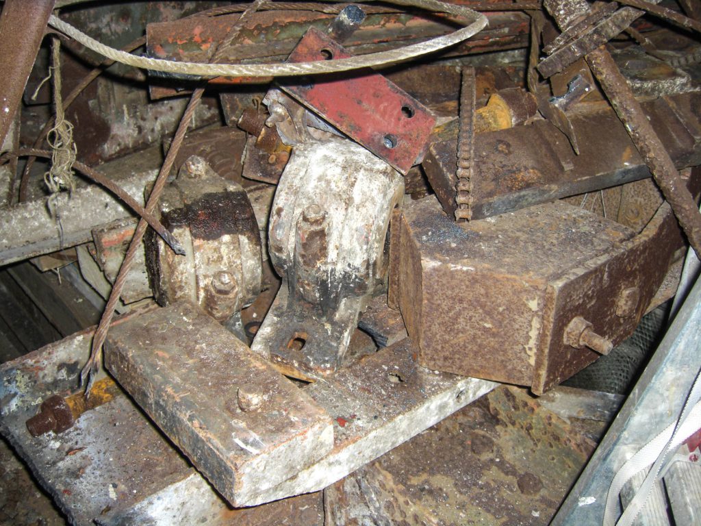 Mit unserem Transporter starteten wir 5.00 Uhr, voll geladen mit Flaschenzügen, Holzbalken, Schweißzeug und allerhand Werkzeug, zum Teil extra für diese Demontage vorbereitet. Unsere erste Aufgabe bestand darin, die Flaschenzüge nach oben zu transportieren und in der Glockenstube aufzuhängen (der große Flaschenzug hebt 10 t und wiegt 90 kg). Nachdem die Glocken abgesetzt und gewogen waren, gingen wir daran den alten Eisenstuhl in transportfähige Einzelteile zu zerlegen.